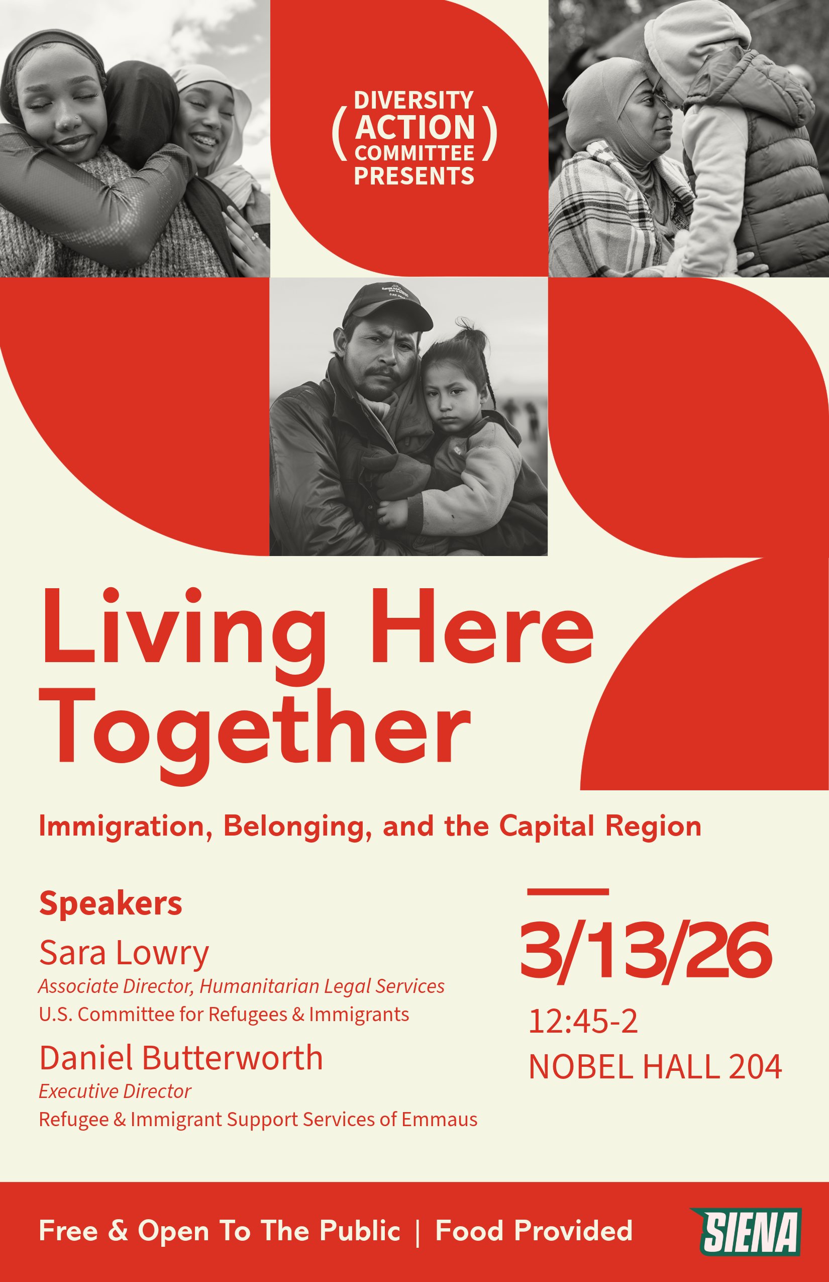 I’m co-chairing the Siena University Diversity Action Committee this semester with Taewoo Kang. Our first event of 2026 is Living Here Together: Immigration, Belonging, and the Capital Region. Hope to see the Siena community there! Follow DAC on Instagram!